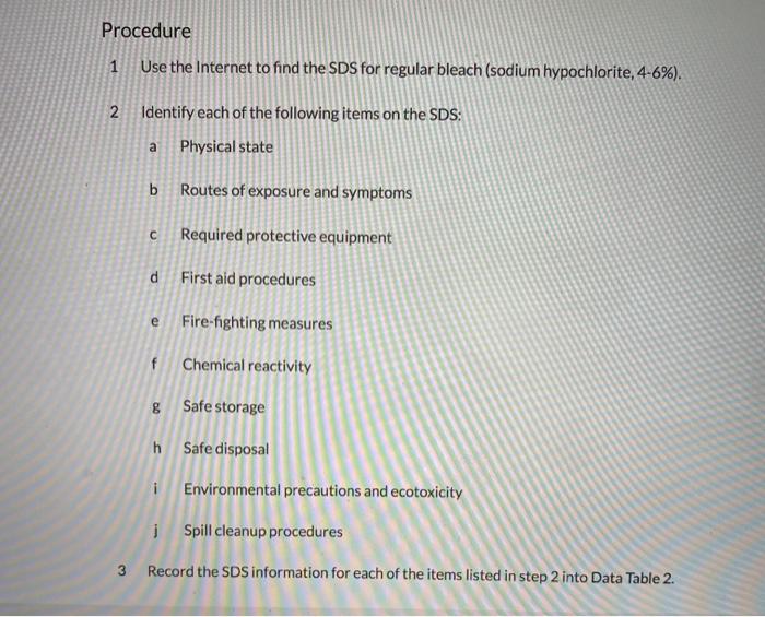 Solved 1 Use The Internet To Find The Sds For Regular Bleach Chegg Com